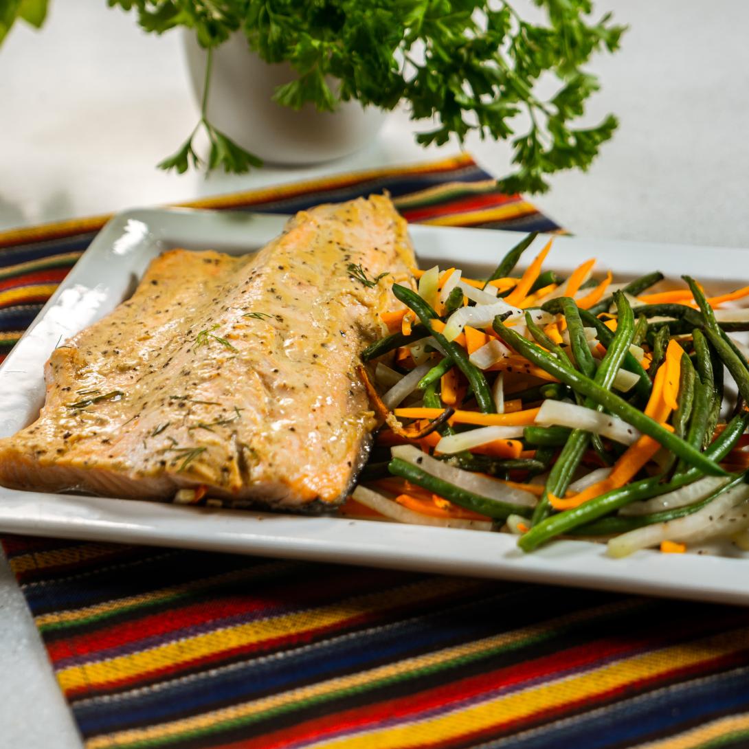 - Tõsta kalafilee köögiviljadele ja küpseta rooga ahjus 190 kraadi juures u 12 minutit. Küpsetusaeg sõltub ka kalafilee paksusest.