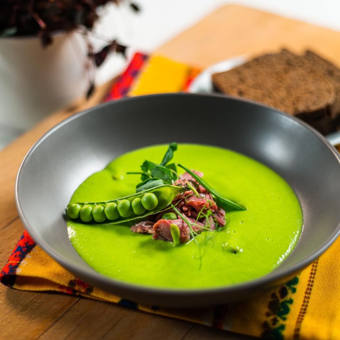 - Serveeri suppi koos rebitud suitsukoodilihaga. Kaunistada võid hernevõrsete või muu aias leiduva meelepärasega.