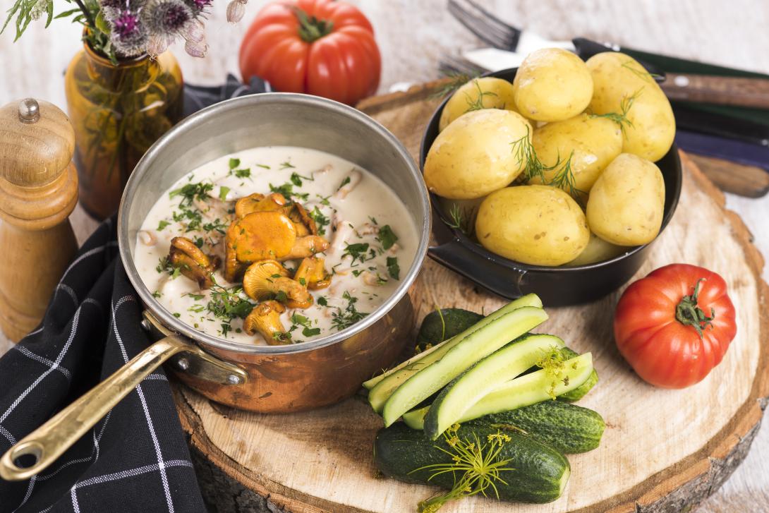 Kukeseenekaste värske kartuli ja värske hapukurgiga