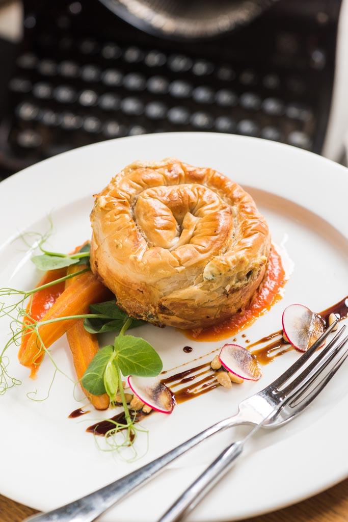 Kitsejuustu-spinati pirukas, beebi porgand, kappari