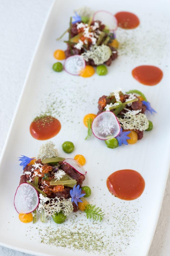 Saaremaa põdra böff - kergsoola põdraliha, mädarõigas, forellimari, suitsumunakollane, põdrasamblik