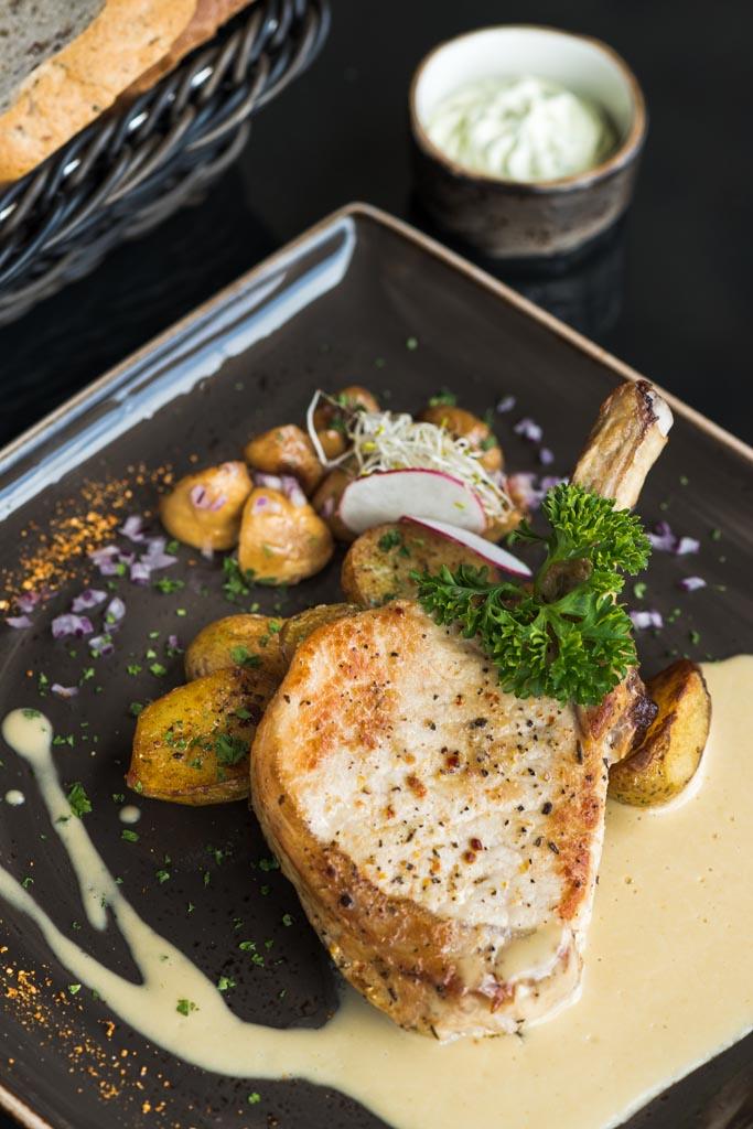 Seakarree röstitud kartulite, marineeritud seente ja piprakastmega